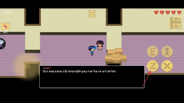 4、当出现对话时,点击【Z】键展开交互。