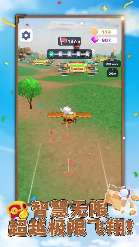 疯狂加速度是一款趣味性十足的飞机驾驶休闲闯关游戏。在游戏里,玩家得操控飞机跨越诸多障碍与陷阱,抵达终点以完成挑战。整个过程中,要时刻留意提升飞行速度,因为只有快速冲线,才能让奖励收益最大化。这对玩家的操作技巧和反应速度是个不小的考验,稍有走神或松懈,就可能直接失败。而且,游戏还有极为丰富的玩法模式等你来尝试,全程高度考验驾驶方法、技巧与经验。合理安排飞机各方面的改造,随着改造强化,能迅速达成各项目标,带来相当不错的趣味挑战与任务完成体验。其整体趣味性与可玩性都非常高,感兴趣的小伙伴们,快来体验一番吧!