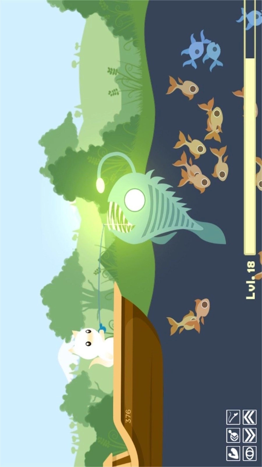 5、当成功捕获鱼类之后,能够将鱼售卖从而换取金币,以此来更新自身的装备。