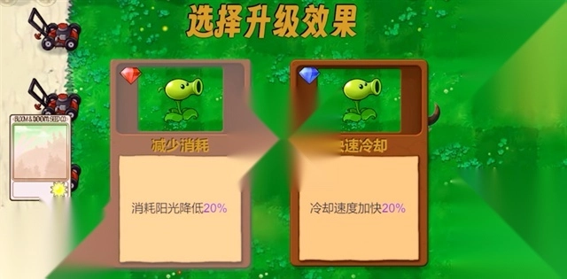在游戏过程中,玩家点击铲子旁的升级按钮就能升级植物。每升两级,可选择一个技能。强化时,植物右下角会显示所需消耗的阳光以及强化概率。