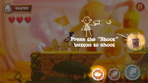 2、玩家可借助右下角的按键来实现跳跃或攻击操作,同时利用左下角的左右箭头按键控制角色移动。