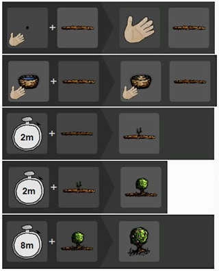 当食物储备充足后,便需着手准备其他物质生活所需,比如制作衣服要用的大量丝线,因此就需要种植乳草。其种植方式和种胡萝卜类似,只是乳草会消耗土壤。乳草的生长规律为:生长期 + 20 秒后进入开花期,开花期再过 20 秒进入结果期,结果期 20 秒后又回到生长期,如此循环往复。另外要留意,乳草种子若扔在地上会逐渐消失。