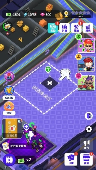 酒吧不夜城手机版是一款放置类的模拟经营游戏,在整个现代科技感的氛围营造下,玩家所扮演的酒吧老板需考虑如何将自己的酒吧事业发扬光大,前期在小助理的帮助你下,你可以熟悉酒吧运作的流通,通过点击相应的区域可以购进设备,也能为该区域进行一次华丽的装饰,毕竟好的环境才能吸引到更多的客人,介于此,玩家同时还能通过广告宣传的方式来增加酒吧的人流量。当然了,作为老板其关键是掌控大局,相对于其他的工作你可以招聘员工来帮你一起打理,这里提供了前台小妹,扫地机器人以及其他员工类型,增加的卡牌元素,能够在一定程度上提升工作的效率,增加酒吧的营业收入。除此之外,酒吧不夜城游戏内的随机事件将为该游戏增加真实性体验,面对小混混的骚扰,你可以增派保安维持现场秩序,相关类似的事件还有不少,其中不乏有富二代进行消费,紧抓机遇,将会让你的酒吧生意越来越好。另外,别忘了新增酒吧设施和服务项目的升级。