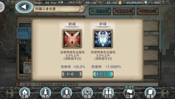 13、社交系统—可以增加删除好友,搜索好友,及设定常驻好用协助,台服设定常驻好友的翻译为“中意”。设定后该好友将顶置在协助第一位,并且无限使用,不需要找。