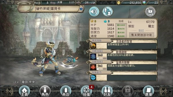 3、 AP—体力,受RANK高低的影响,AP成长值前300RANK最大。