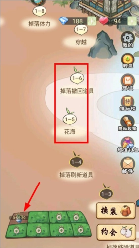 2. 在主页面,玩家既能查看有待通关的关卡,也能够进行种田操作。