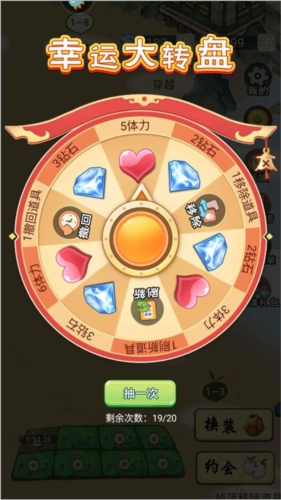 3、在游戏里,设有幸运大转盘,通过转动它能够获取体力,而体力可用于关卡通关。
