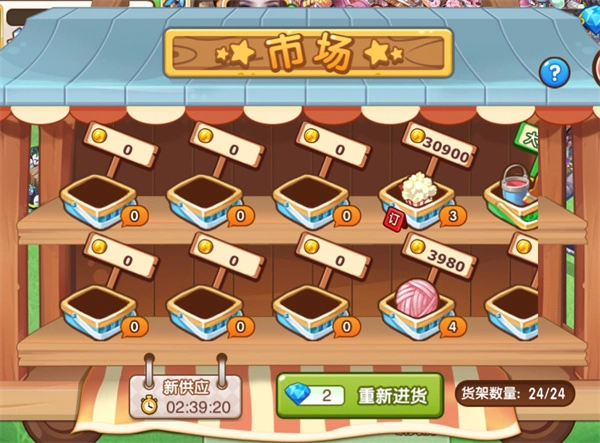 2、市场介绍市场是全新加入的功能。市场上的货物每6小时自动刷新1次,随机刷出货架货物,大家可以用金币买到自己需要的货物,或者买到打折的仓库材料~