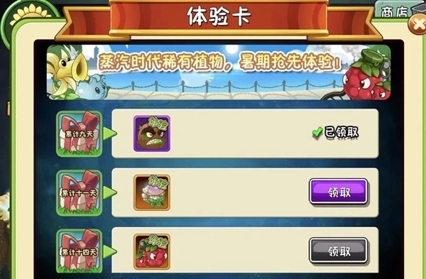 游戏会不定期推出新植物和新活动。就拿当下的活动来说,设有体验卡,玩家能够领取植物进行体验。不过需要注意的是,通过这种方式获得的植物并非永久持有,仅仅是短暂体验一番。