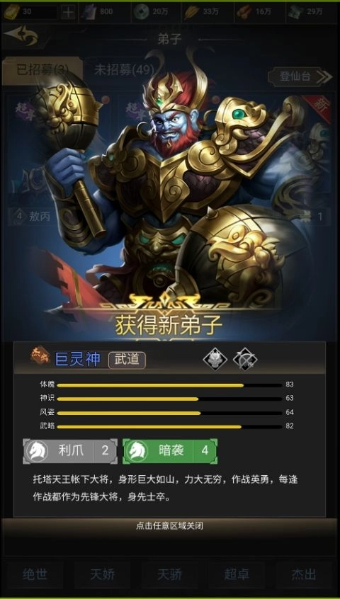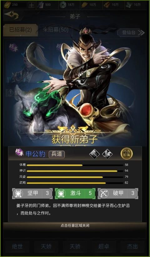 那些众人熟知的上古豪杰,皆能被招揽至你的阵营之中,像蚩尤、炎帝、鲲鹏、夸父等等。这就仿佛是真正的神仙展开争斗,不存在无用卡牌的培养情况,无论神、人还是妖,任何种族之间的搭配,都足以左右战局。