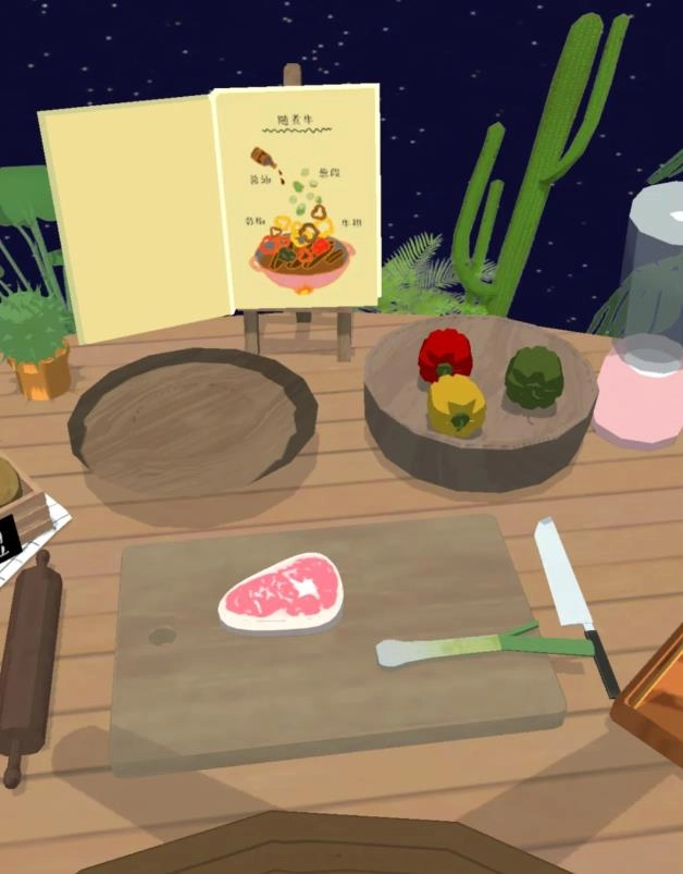 3、然后将食材点击放在菜板上,选择刀具进行处理,