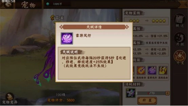 宠物能为携带者带来显著的属性增强与伤害加成,同时宠物的技能天赋也会得到不同程度的提升。由于不同宠物适配不同武将,只有相互匹配才能发挥出宠物的最大效果。以 S 级宠物雷雀为例,它的三天赋可提升携带者的攻速、移速以及技能释放速度,四天赋则提升普攻速度,优先适配的携带者为荀彧。大家都知道,荀彧的小技能不仅伤害高,而且冷却时间短。由此可见,雷雀与荀彧堪称绝配,提升技能释放速度和普攻速度,能够让荀彧小技能的伤害输出达到最大化。