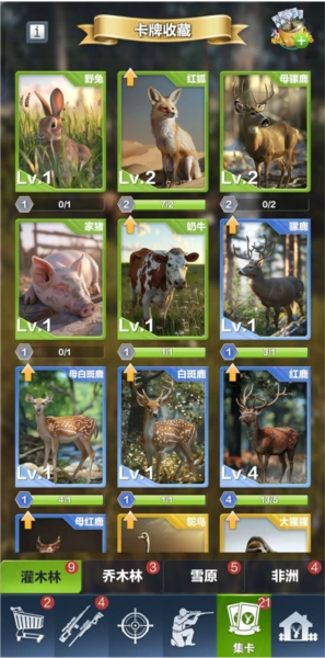特别打造集卡系统,专为猎友们悉心收藏动物卡牌。