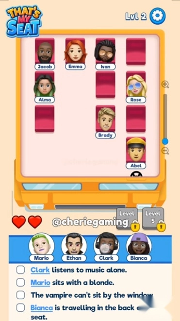 1、在关卡初始界面,会清晰呈现本场景的座位分配规则,此规则即为最基础的操作指引。