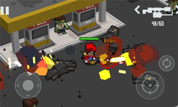 3、像素化细节打造:把僵尸的动作细致拆解为方块的运动轨迹,武器特效则运用体素化的爆炸效果,以此维持整体风格的一致性。