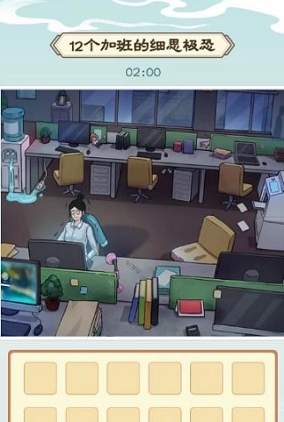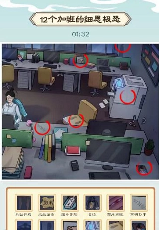 1、首先,玩家需要知道,在这里要在加班场景中找出十二处细思极恐的地方,接下来,玩家就得去寻找这些相关物品。