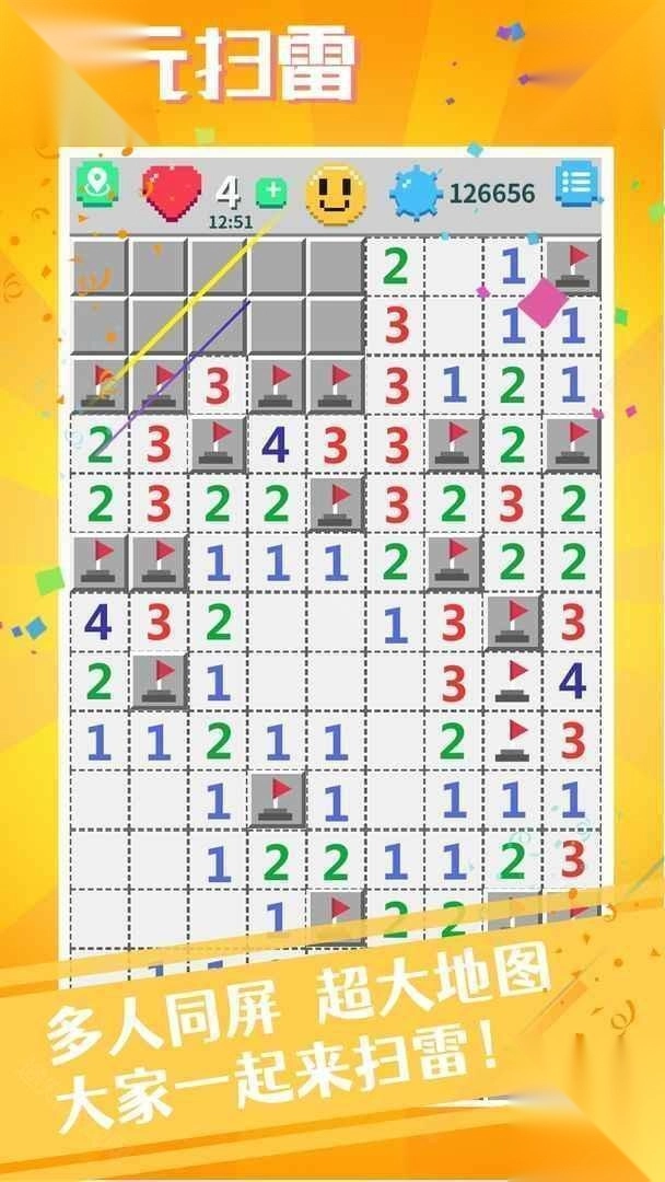 1. 体验地图上的扫雷玩法,经典扫雷模式,搭配超广阔地图,通过点击数字展开排查。