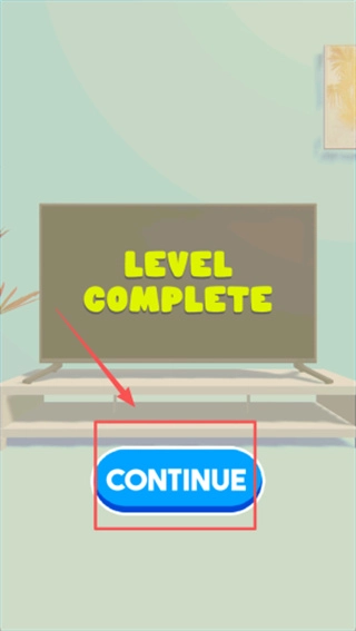 2、当电视机屏幕上出现“level complete”字样时,会在屏幕下方看到蓝色的“Continue”按钮,点击该按钮即可直接进入下一场关卡挑战。