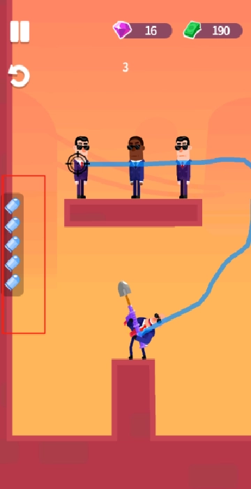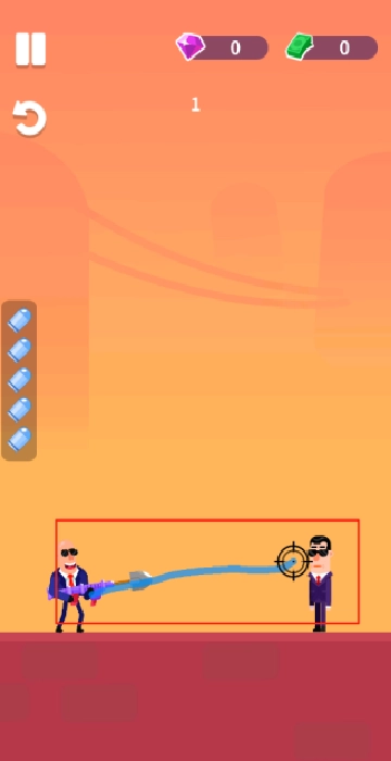 2、在各个关卡里,你都会遭遇需要消灭的敌人。操作十分简单,仅需用手指轻点屏幕,接着进行画线,让子弹精准射向对手,将其成功击杀。