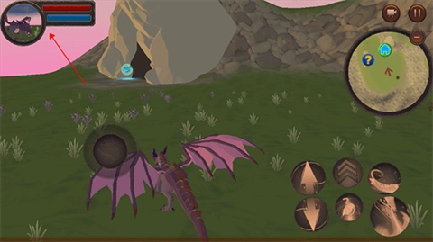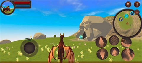 进入这个世界后,左下角的按钮能操控龙自由移动,右下角则分布着近战、远程、加速、飞翔等部分技能按键。其中加速技能需要和左下角的移动操作配合使用,这样龙就能以更快的速度移动了。