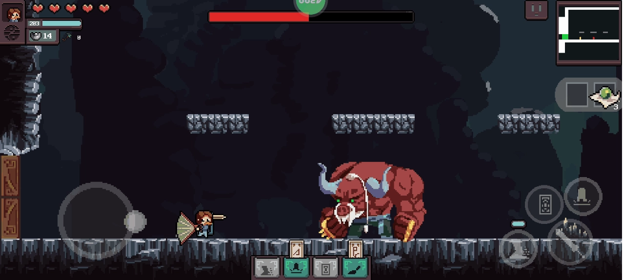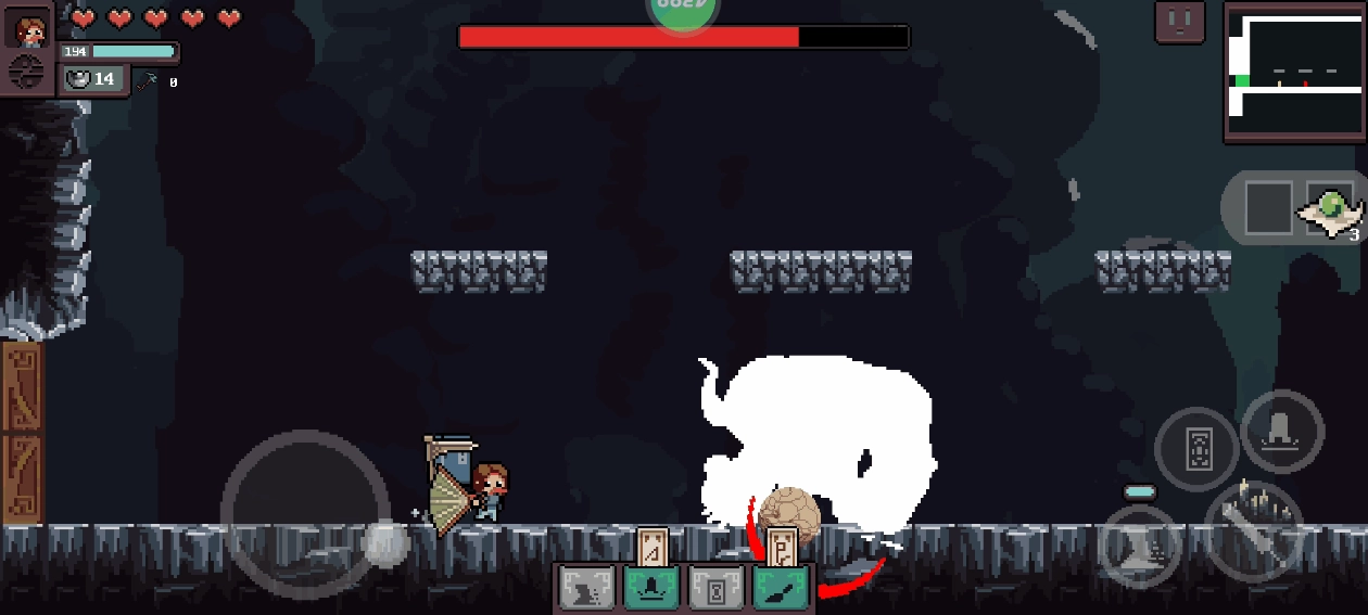 当遇到障碍物时点击图示图标可进行跳跃;
