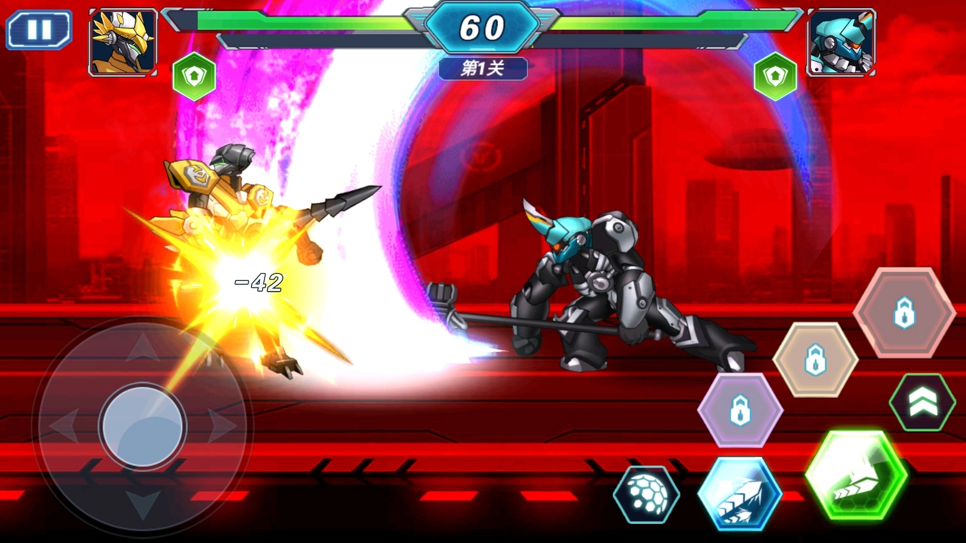 变形机甲大战是一款以机甲为主题的动作格斗游戏。在游戏中,玩家能够解锁众多机甲英雄,参与竞技场的激烈对决。游戏拥有酷炫的打击特效和流畅的操作手感,玩家通过培养英雄可以解锁更多战斗技能,同时还能借助升级零件来增强英雄的基础攻击力与防御力,使格斗过程更具策略性。除了单机闯关模式,玩家还能在线与真人玩家对战,尽情体验激情四射的指尖格斗乐趣!