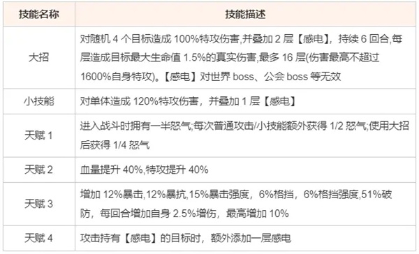 暗影邪鸦属于草系SSR品质的精灵,它的核心优势在于借助群体攻击来叠加百分比伤害效果。它的终极技能可以对多个目标附加带有持续伤害特性的【感电】状态,该伤害的计算依据是敌人的最大生命值,因此在应对高血量的单位时尤为适用。而它的普通技能同样具备施加【感电】状态的能力,能够进一步强化持续性伤害的效果。其天赋不仅可以保证怒气的快速积攒,还能同时提升自身的生存能力与输出能力。尤其是攻击时叠加【感电】的独特机制,让它在持续输出的领域有着十分出色的表现。