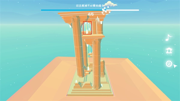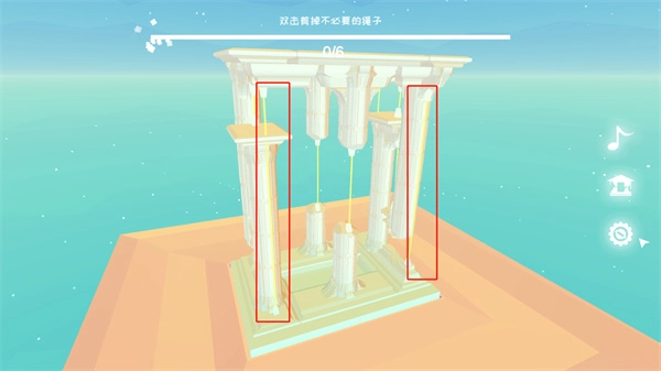 第三关要剪断六根绳子,玩家得先把四个角的绳子剪断。