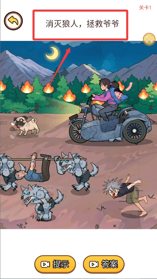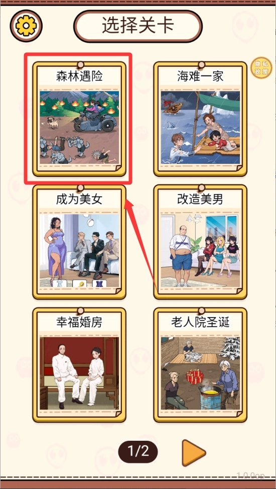 在模式选择界面选择“森林遇险”挑战,该模式中会随机生成3种不同强度的狼人,难度会随着时间的推移逐渐增加。