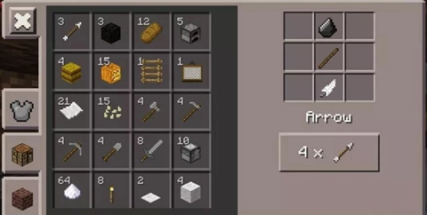 点击下方工具栏最右侧的省略号图标,就能查看背包里的全部物品。它左边的选项卡是合成区,在这里可以手动将背包中的物品转化为其他物品,例如把木头加工成木板、羊毛制作成羊毛垫之类的。