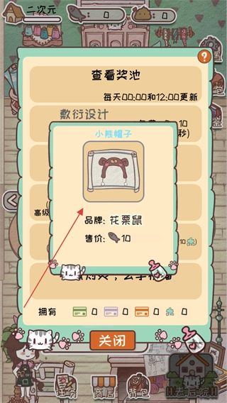 选择敷衍设计后,成功获取了小熊帽子的设计图纸。这张图纸的品牌是花栗鼠,并且标注了对应的售价,后续可以开展相关操作。