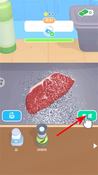 调味操作完成后,点击红色箭头所指向的完成按钮,以此确认当前这一步骤,进而继续推进后续的烹饪流程。