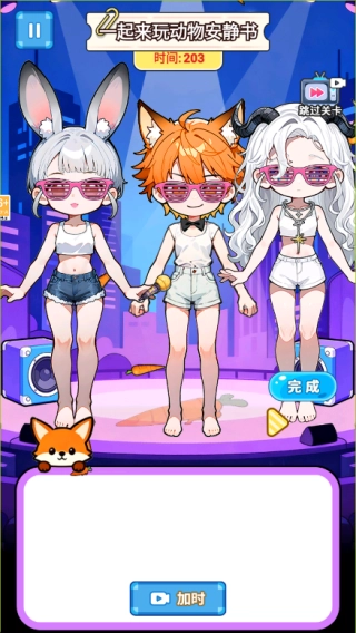 关卡目标清晰明确:每一关都会提供对应特定主题的贴纸素材,玩家需要依据给出的提示,完成角色造型的搭配任务。