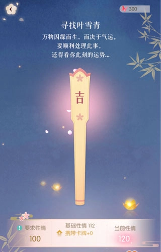 接着开展抽签环节,会出现吉、凶、平三种运势结果,通常开局抽到的是吉签,这一关就顺利通过了。