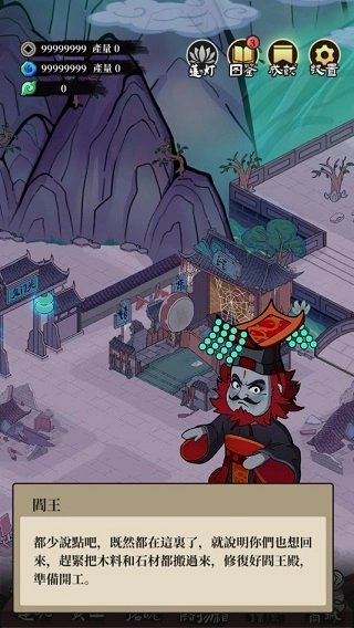 地府一日游是一款简单易上手的休闲经营游戏,题材大胆创新,剧情诙谐风趣。在游戏里,你将化身地府管理者,通过建造各类地府设施建筑来管理地府事务。同时,你还需要审判地府中的亡者,认真对待他们的生前经历,助力更多鬼魂净化生前罪业,让他们得以解脱。