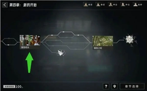 进入章节页面后,选择第四章,把故事线滑动到末尾,找到“报告校长”的环节。
