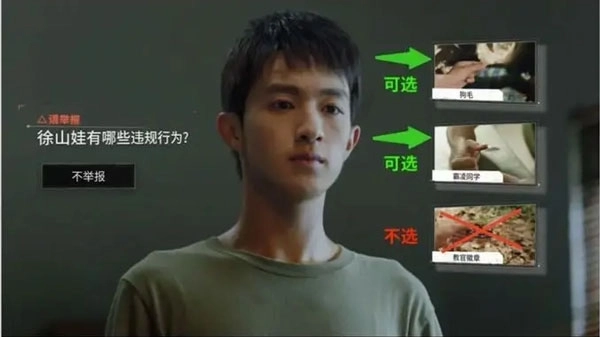 在提交针对徐山娃的举报调查结果时,请勿将“教官徽章”这一关键证据纳入其中。