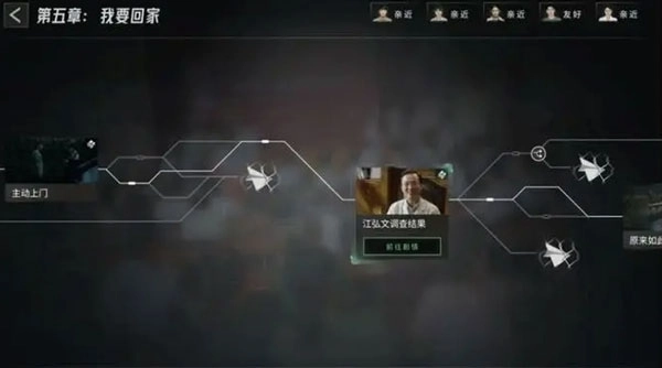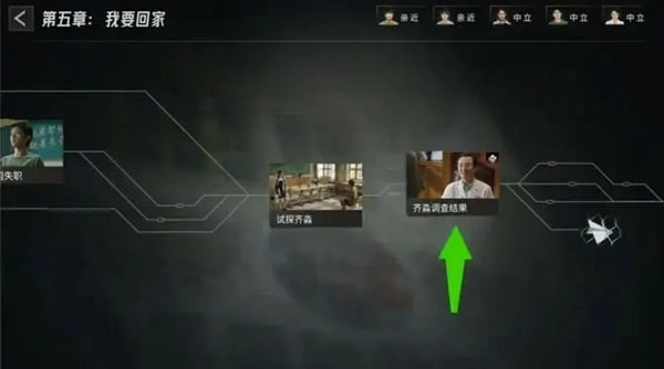 在把前两个剧情点的选项修改好之后,再返回第五章,滑动到故事线的末尾,选择“江弘文的调查结果”这一剧情。