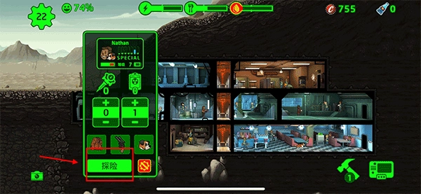 派你的居民前往地面,去探索那些被炸毁的废墟,让他们在这片“废土”里冒险——要么找到能用的幸存物资,要么就直面悄无声息的死亡;收集新的装甲与武器,积累经验,还能赚得“瓶盖”。不过千万记住:别让他们送命!