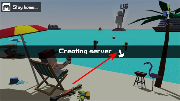 在游戏主界面点击播放按钮,就能启动服务器创建流程,这是开启沙盒玩法的基础步骤,之后便可以体验场景搭建了。