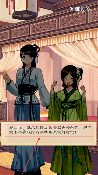 身为金家的少爷,首先得去书房打理行囊,为赴京赶考做足准备,这便是开启科举修仙之路的第一步,也是抉择人生方向的关键时刻。