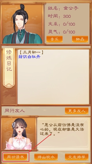 日常不妨用功读书以提升文采,或是通过交友游学结识如白牡丹般的人物,借此积累灵气,推动修炼日记的进度。