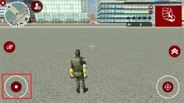 你可以通过操控【红框内的移动按钮】来控制角色移动,在城市区域里进行探索,以此推进守护任务的进度。