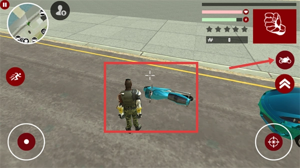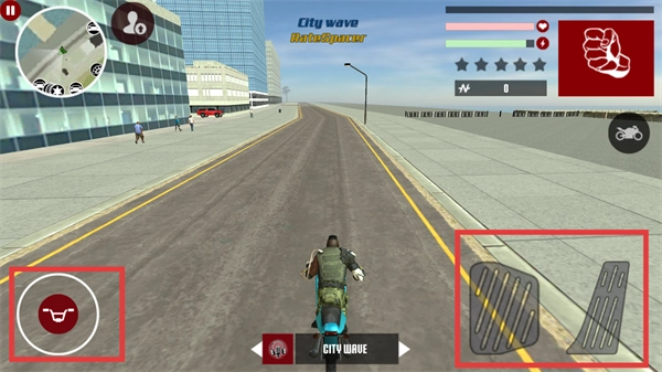 驾驶载具时,通过操作【红框内的踏板按钮】来控制载具前进,在城市道路上完成守护任务。