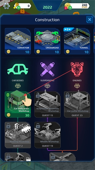核心玩法围绕空间规划与组装实操展开,玩家要在有限的厂区里对冲压、焊接、涂装等功能车间进行合理布局,通过优化生产动线来让产能达到最大,同时兼顾策略性与动手的乐趣。