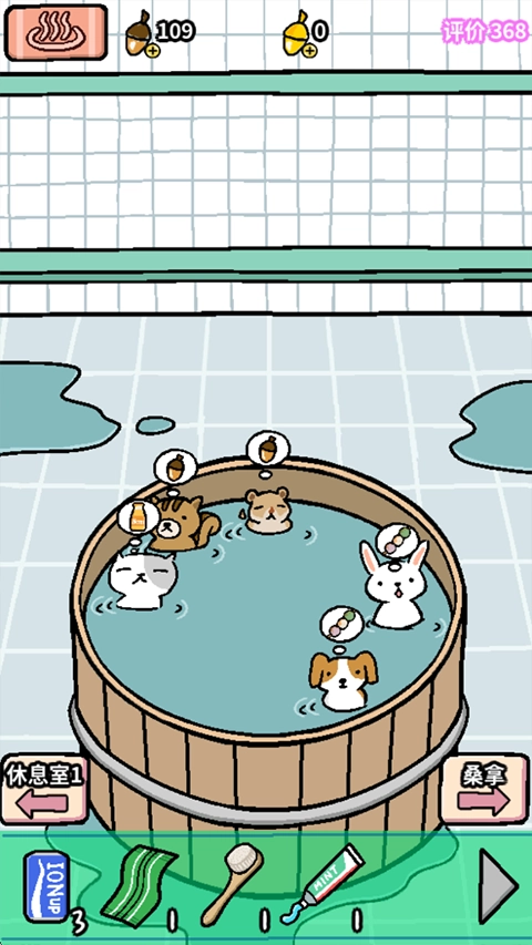 你得及时满足他们对沐浴产品的需求,以此提高他们的满意度。在动物温泉这款游戏里,玩家还得积攒橡子,用来升级温泉设施和购置新物品。