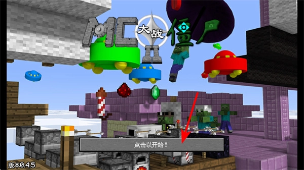 在游戏启动界面,点击“开始”按钮就能进入MC风格的塔防玩法,这是开启僵尸防御挑战的基础操作,需要通过部署器械、利用资源来抵御敌人的进攻。