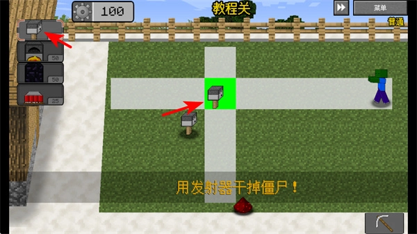 保留PVZ核心塔防机制,将“植物”替换为MC特色器械(例如豌豆射手对应发射器、向日葵对应熔炉),“僵尸”调整为MC怪物(像普通僵尸、铁盔僵尸这类)。