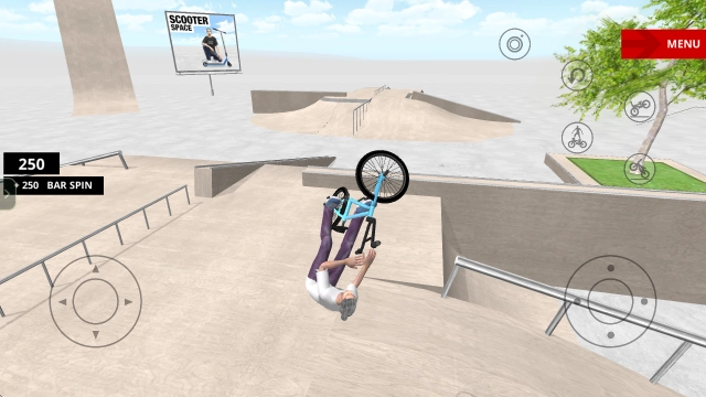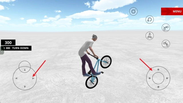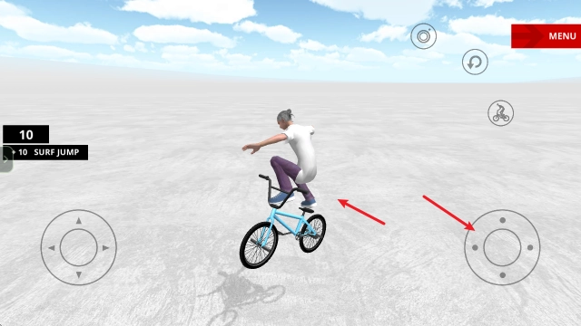 游戏开始后,左侧摇杆用于操控自行车的移动,右侧摇杆可完成各类动作,像是左右拉动摇杆就能让自行车旋转。