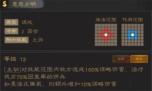 高倍率谋略范围伤害,伤兵本身影响不大,最大的缺点是攻击范围过小,建议搭配高机动性的谋略将领使用。